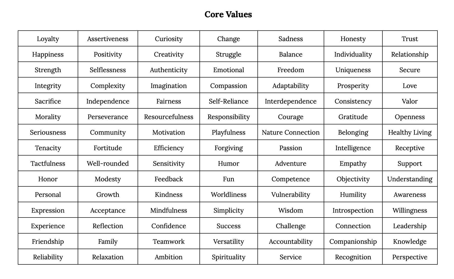 Now, look at the list of values below. Take your time with it. Then,