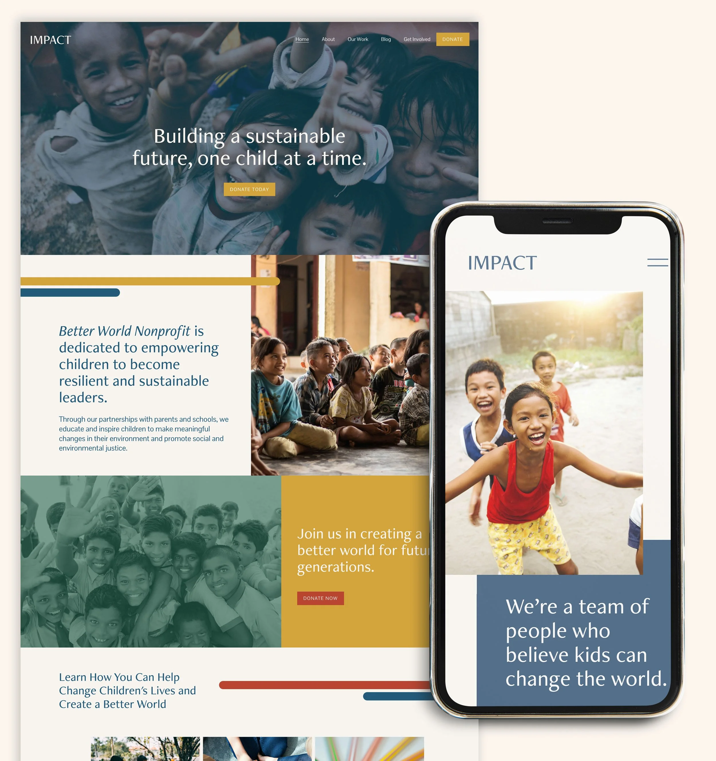 Our made-in-house Squarespace layout, Impact, is an upbeat and welcoming design crafted for nonprofits aiming to showcase their message, radiate positivity, and look professional. This contemporary and lively framework merges modern aesthetics with practical design elements. With Impact, you'll find a layout that exudes both energy and approachability, perfect for those seeking a dynamic and inviting digital presence. Enhance your nonprofit's brand with Impact, where the framework speaks volumes about your dedication to making a positive change, highlights your purpose, and presents a fresh approach to your community engagement.