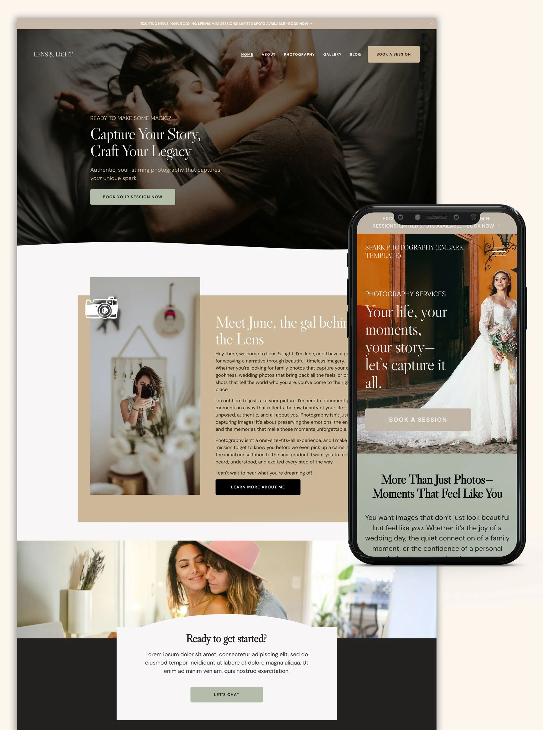 Meet Spark, the Embark design template for an affordable Squarespace website crafted for photographers, artists, and creatives who want their work to take center stage. With its bold, image-driven layout and expressive design elements, Spark is built to captivate and inspire. Let your creativity shine with a visually immersive online presence that highlights your portfolio in a dynamic and engaging way. Whether you're showcasing photography, fine art, or a creative service, Spark ensures your work speaks for itself.